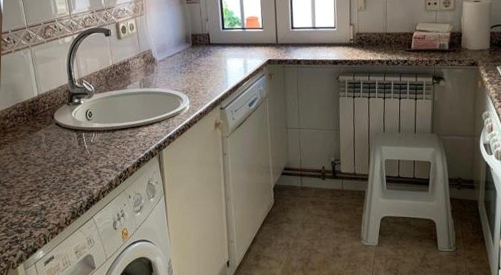 cocina totalmente equipada y balcón con vistas al pueblo. 2 Parkings públicos a 100 m. de la vivienda, al lado el Ayuntamiento.